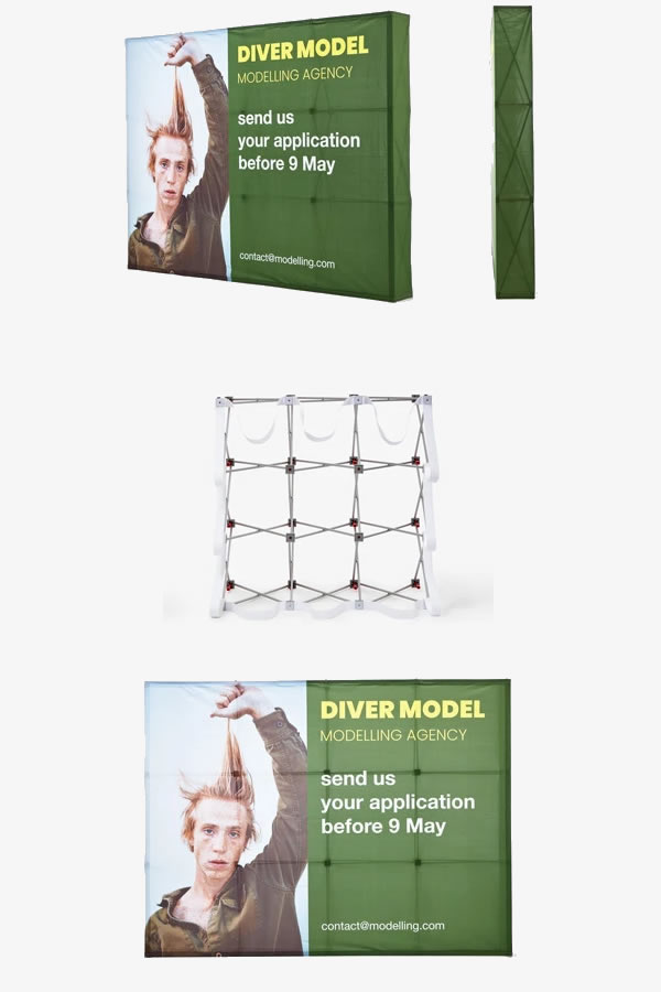 “Örümcek Display” ler pop-up banner’lardan daha pahalıya mal olmasına rağmen, uzun süre kullanılabilecek markalı arka planlar söz konusu olduğunda vazgeçilmez oluyor. Grafik tasarımlarınızı yeni mesajlarla güncellemek için sadece yenilenmiş baskılar kullanarak uzun vadede tasarruf edebilirsiniz. Kolay taşınabilir olması boyutlarının küçük olacağı anlamına gelmemekte, aksine bir akordeon çerçeve gibi açılıp kapanan kafes çerçeve yapısı sayesinde sergileme alanı inanılmaz boyutlara ulaşmaktadır.